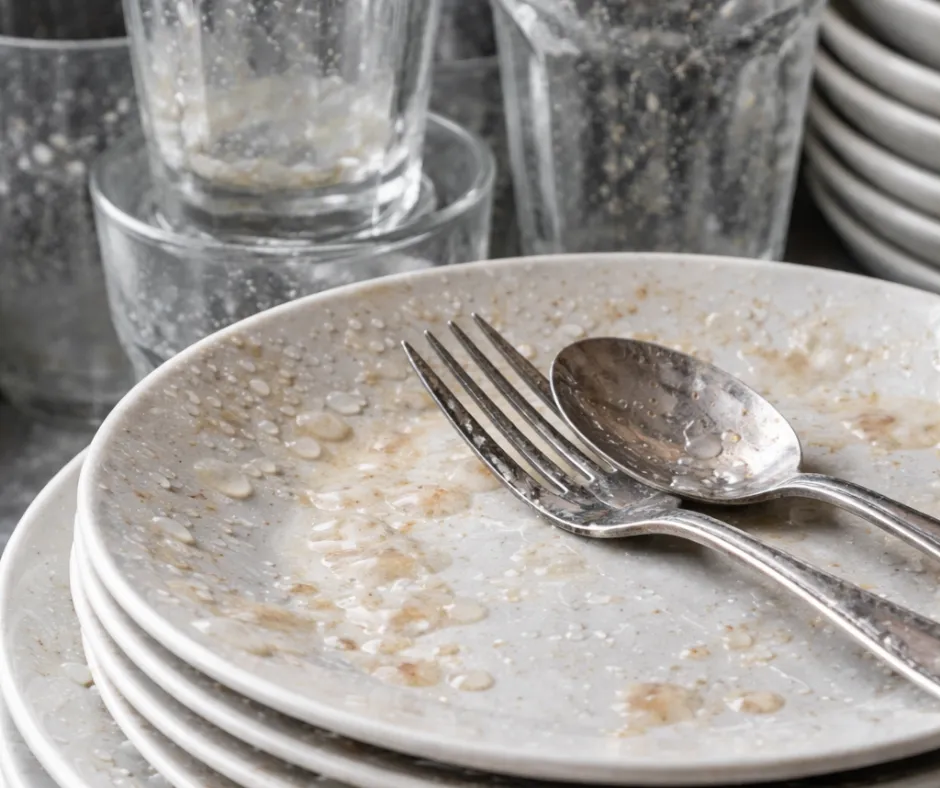 Spotting and residue on dishes, glass, and surfaces
